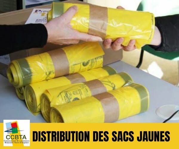 INFORMATION CCBTA : Distribution des rouleaux de sacs jaunes pour le tri sélectif pour les habitants de la Terre d'Argence...